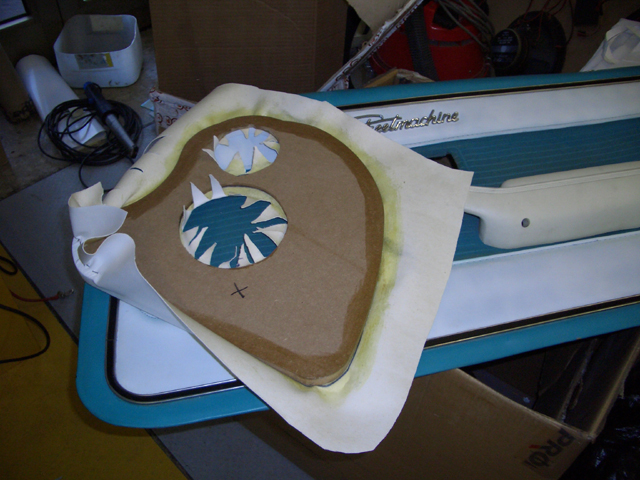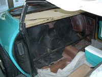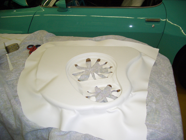 Dopo aver costruito il pannello per ospitare una cassa da 160mm ed una da 100mm, il tutto è stato rivestito con la stessa pelle degli interni. |